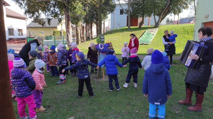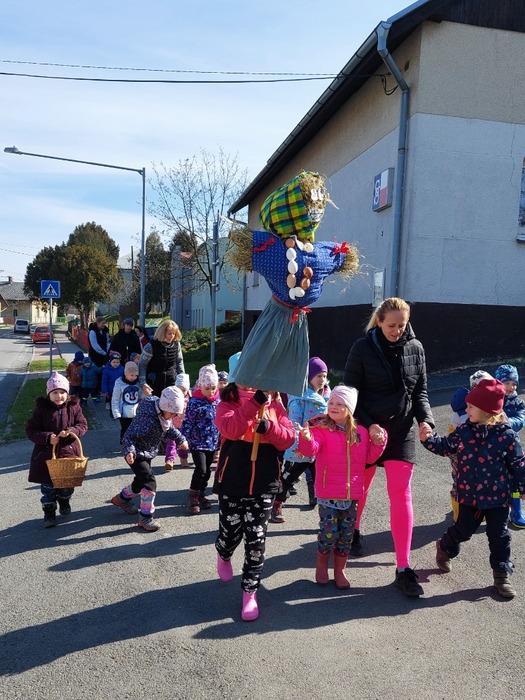 Snažíme se uchovávat zvyky a tradice našich předků. K jedním z nich patří Vynášení Mařeny. Děti si Mařenu za pomocí p. učitelky ve třídě Pastelka vyrobily. Ve čtvrtek 21. 3. 2024 jsme před budovou MŠ zpívali a recitovali slezské písničky, tanečky a škádlivky. Pak jsme se vydali průvodem do Grygarovy skály. Zpátky jsme si nesli Lítečko – jarně ozdobené větvičky. A tak jsme s dětmi přivítali jaro.