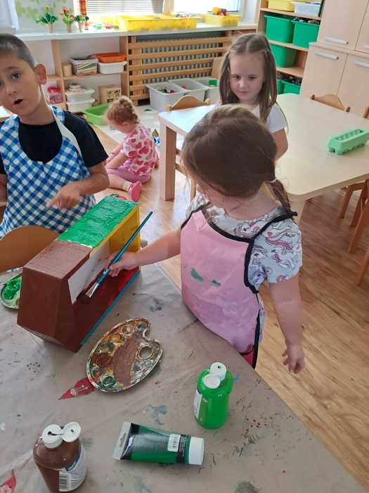 Malovaly slunečnice, které nám už nyní zdobí nástěnku a s velkým zájmem prozkoumávaly třídu i hernu.