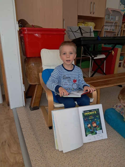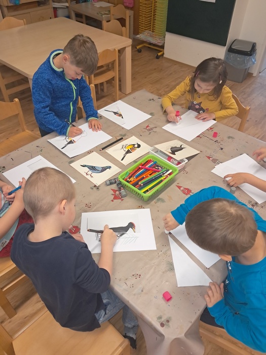 V předposledním májovém týdnu jsme stihli spoustu aktivit. Týden se nesl ve znamení ptáků a opeřených živočichů. Měli jsme možnost nahlédnout do voliér u pana Vavrečky a u paní Krzákové. Děti mohly obdivovat andulky, papoušky, křepelky a několik dnů narozená mláďátka i nevylíhnutá vajíčka. Další mini - exkurze se uskutečnila u pana Vaška, který nás provedl skleníkem a zahradou, i tam toho bylo spoustu k vidění a děti zaujalo především jezírko. Ve čtvrtek jsme se i s pláštěnkami vydali na společný výlet i s mladšími dětmi na Jarošův statek.