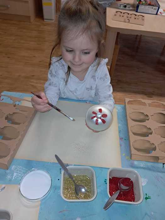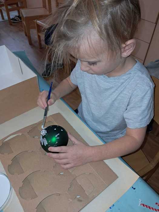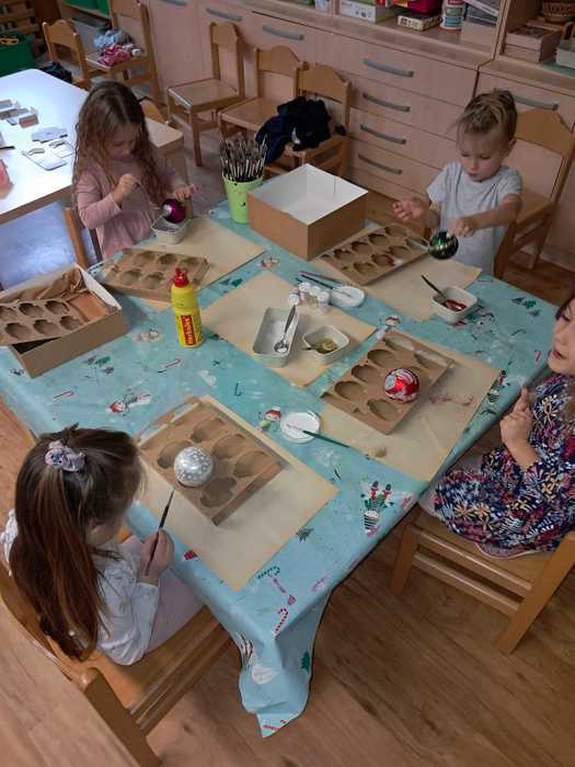 Nejstarší děti navštívily kreativní dílnu ve Slezské tvorbě a ostatní tvořili baňku odpoledne ve školce. Vykouzlili krásné ozdoby.