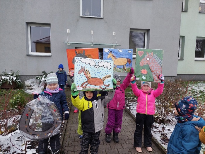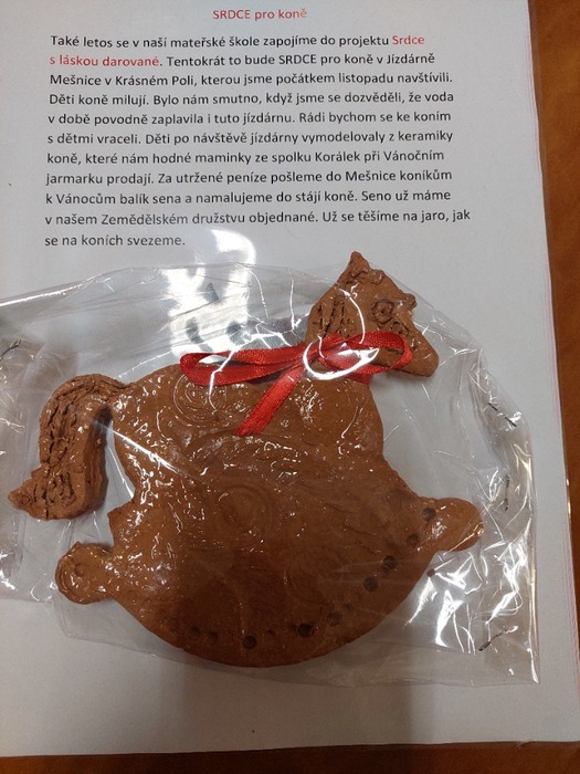 Letos se opět zapojíme do celostátní soutěže Srdce s láskou darované. Vše odstartoval náš výlet za koňmi do Krásného Pole. O koních jsme se dozvídali mnoho zajímavého, s koníky si děti hrály, pro koníky stavěly výběhy, o koních jsme si četli, uspořádali jsme malou výstavku hraček ve tvaru koní.