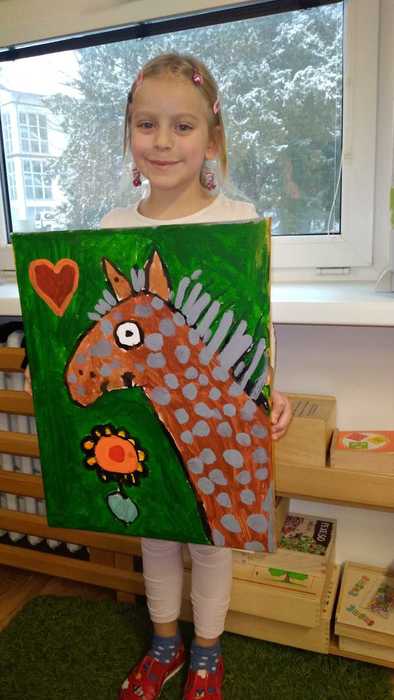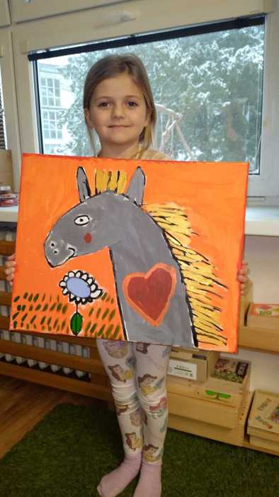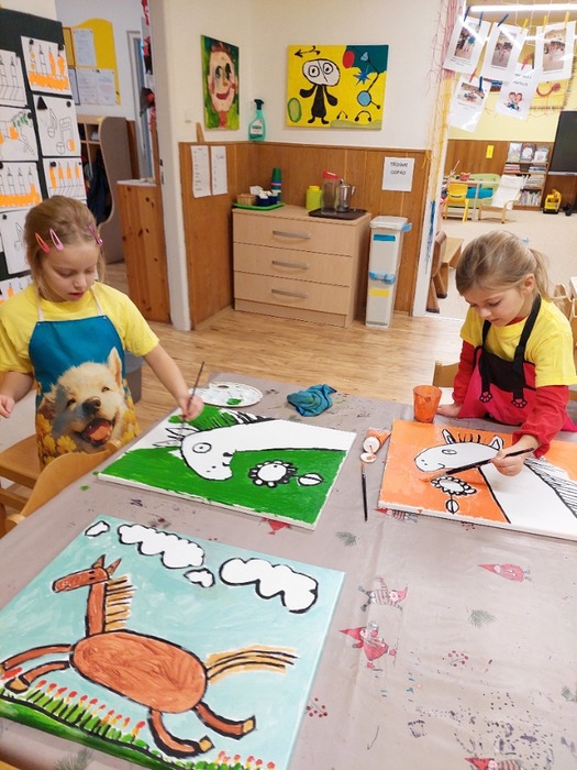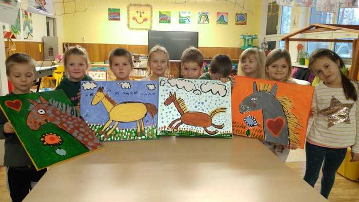 V rámci týdne dobrých skutků děti malovaly koně akrylovými barvami na malířská plátna.