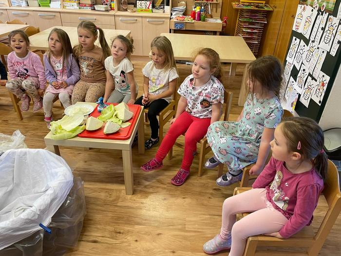 Projektový den této velmi užitečné tradice se vydařil. Děti si mohly na vlastní "nohy" vyzkoušet jak se zelí ušlapává a ostatní je povzbuzovali písničkou.