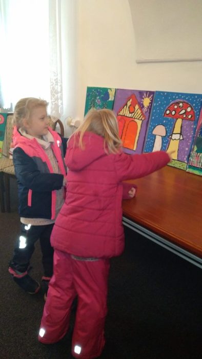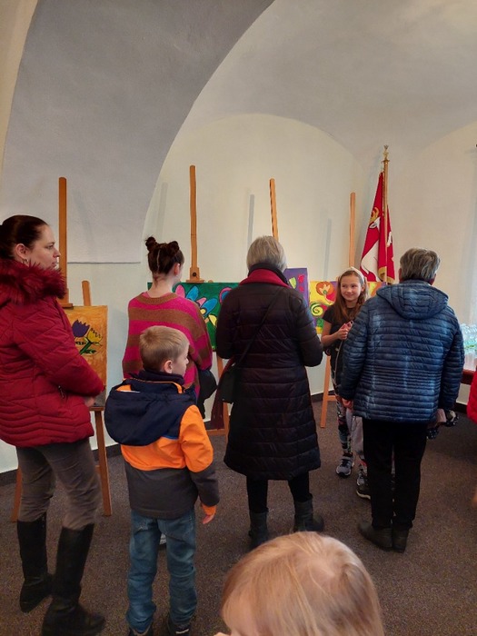 Děti se aktivně zúčastnily 23. 2. 2024 odpolední vernisáže na Obecním úřadě v Kyjovicích.