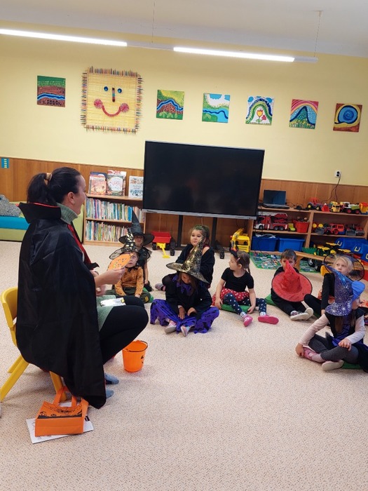 Týden od 30. 10. 2023 do 3. 11. 2023 byl plný zážitků, objevování i zábavy. Pro děti byly připraveny hned tři projektové dny. Tím prvním byl Halloween. Oslavili jsme tento původně keltský svátek v kostýmech, pečením halloweenských sušenek, tanečky, soutěžemi, pokusy i besedou s paní učitelkou AJ Ivou ze ZŠ. Další den byl ve znamení uspávání včel, broučků a jiných drobných živočichů. Děti prozkoumaly v encyklopediích hmyz, řešily zajímavé úkoly spojené s tématikou včel a hmyzu a drobných živočichů. Hrály si na broučky, stavěly pro broučky příbytky. Při pobytu venku jsme společně navštívili včelaře pana Dušana, který dětem vyprávěl o zazimování včel. V pátek děti navštívily klimkovické kino. Nejenže děti zhlédly pohádku, ale také prozkoumaly promítací kabinu, stroje a přístroje spojené s provozem kina.