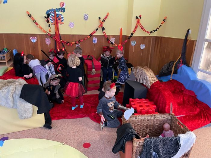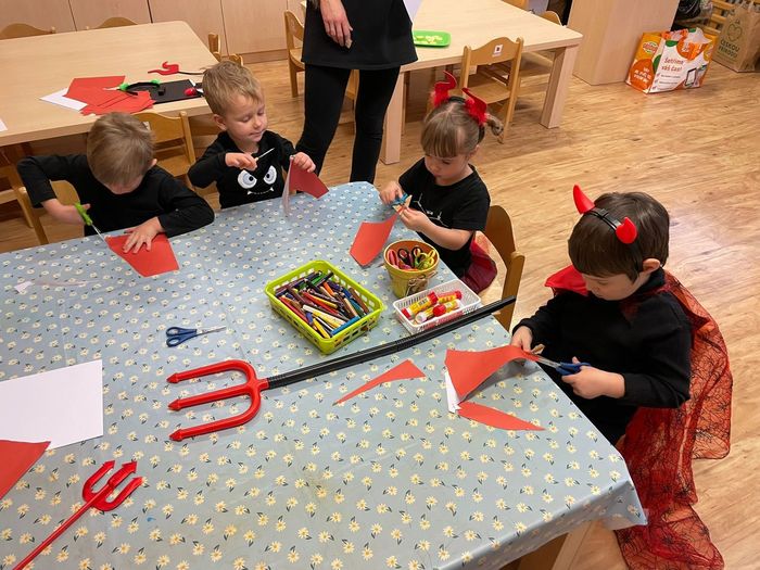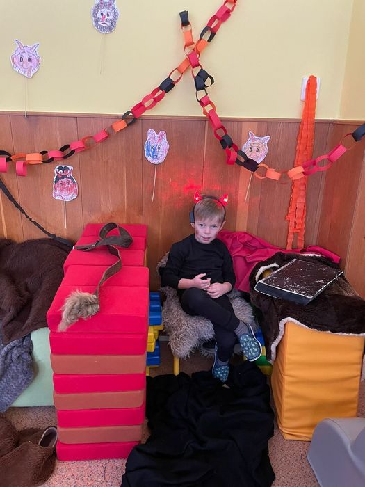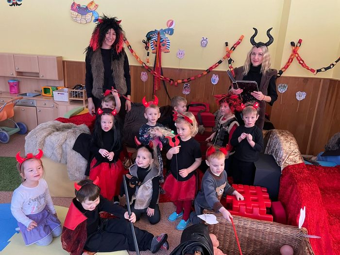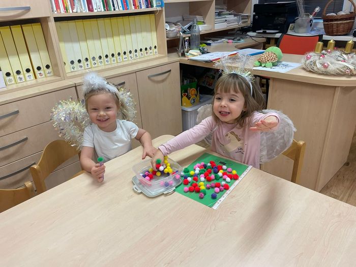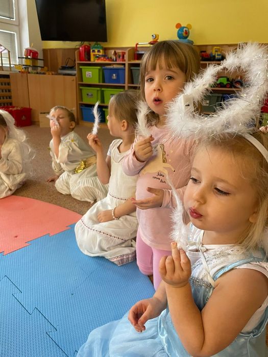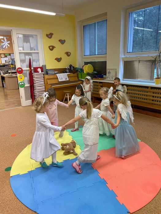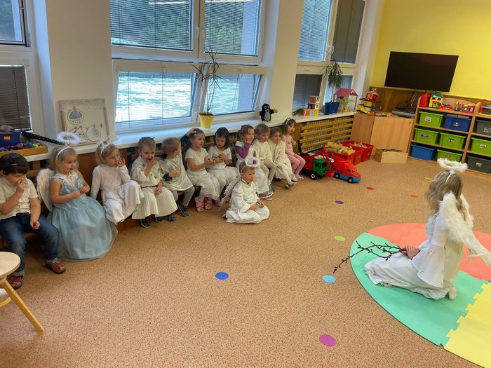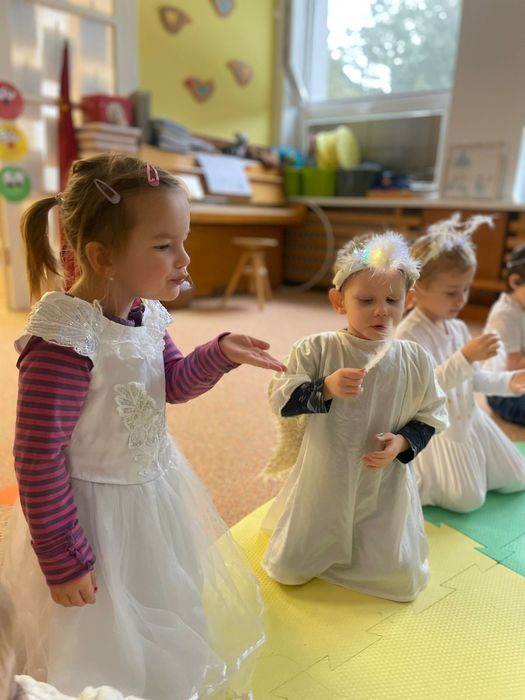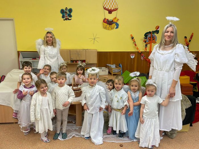 Ve středu jsme si užili Čertovský rej, kdy se školka proměnila v malé peklíčko plné tance a dovádění. Ve čtvrtek nás naopak pohltilo světlo a klid – připravili jsme Andělský den, který byl plný jemných aktivit, bílých křídel a laskavosti.