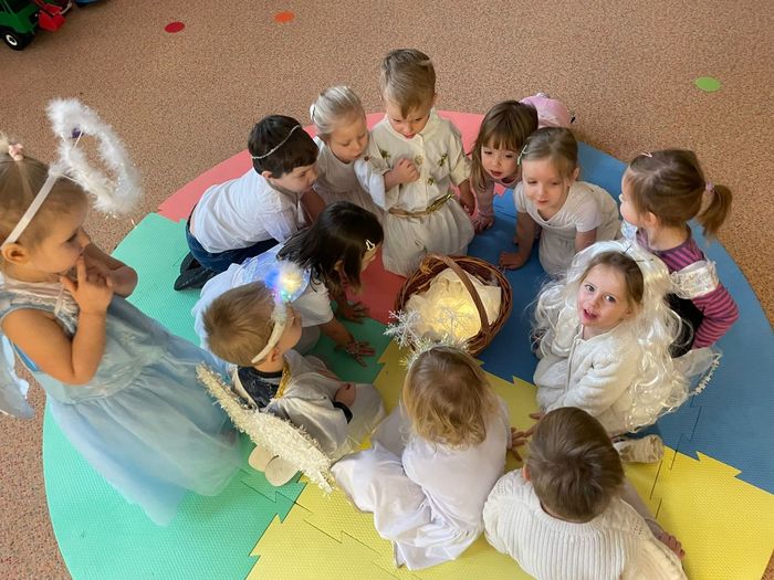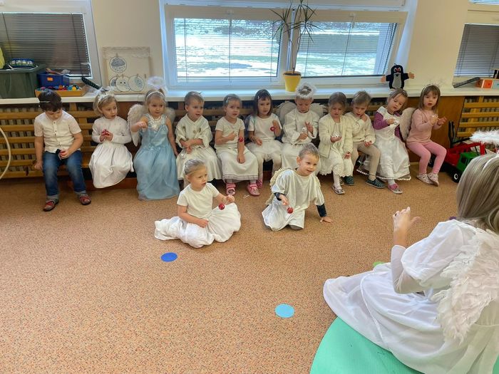 Společně jsme si povídali o začínajícím adventu, o významu první zapálené svíčky na věnci a o tom, jaké tradice se k tomuto období vážou. Celý týden se nesl také ve znamení Mikuláše, anděla a čerta. Čekaly nás různé tematické hry, povídání, tvoření a zpívání.