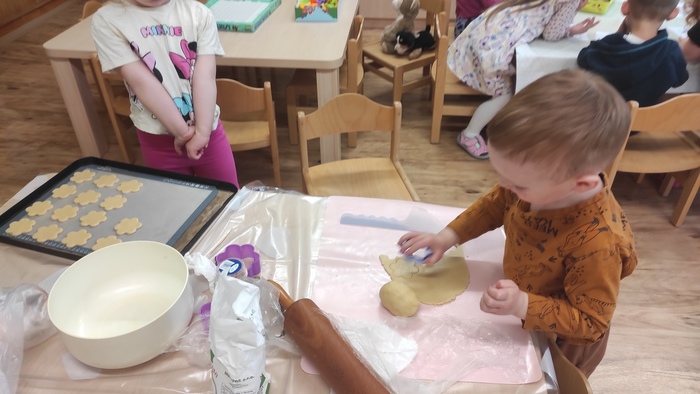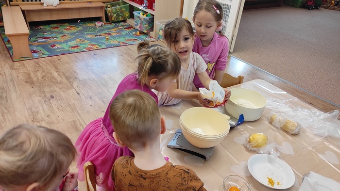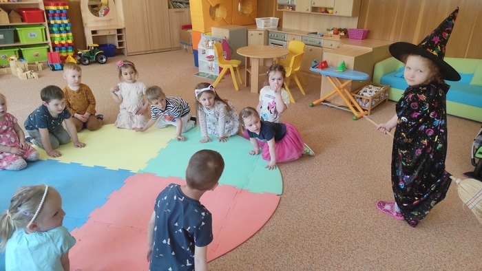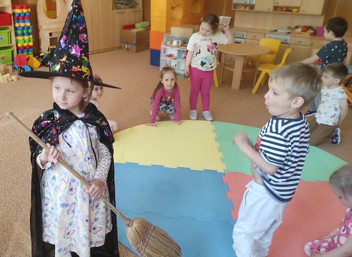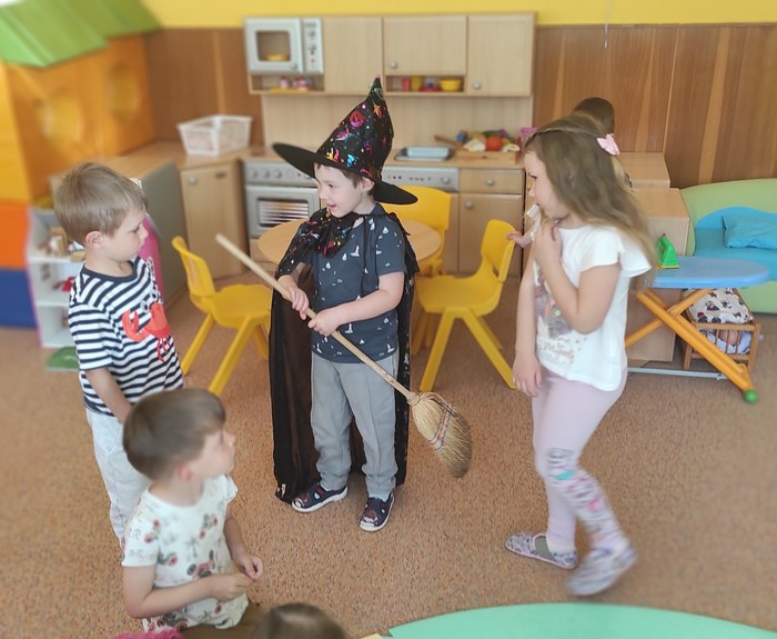 Týden na přelomu dubna a května nám přinesl zajímavé akce a činnosti. Hned v pondělí jsme jeli do Divadla loutek v Ostravě, kde jsme zhlédli moc hezkou pohádku o dvou pejscích. V úterý jsme se pustili do výroby těsta a potom jsme váleli, vykrajovali a pekli sladkou dobrotu pro naši vzácnou návštěvu, kterou již brzy u nás v MŠ přivítáme. Ve středu jsme si připomenuli tradici stavění májky a pálení čarodějnic. V kostýmu od Zuzanky a za doprovodu textu písničky „děvčata, děvčata chystejte si košťata,“ jsme si zahráli na čarodějnice. V pátek jsme si pověděli o svátku, který se slavil 1. května. Šli jsme se podívat k obchodu, jak se zde pracuje na rekonstrukci parkoviště. Také jsme se zastavili u pomníku padlým vojákům. Na školní zahradě jsme si užívali teplé slunečné dny.