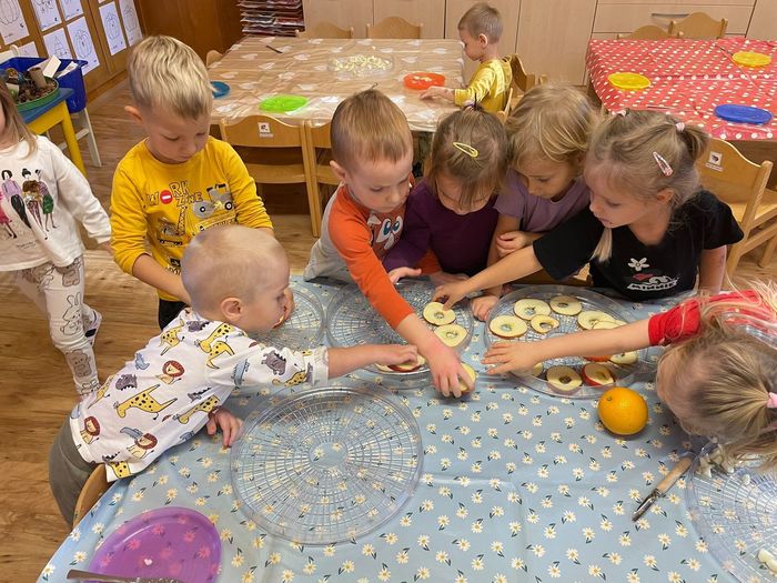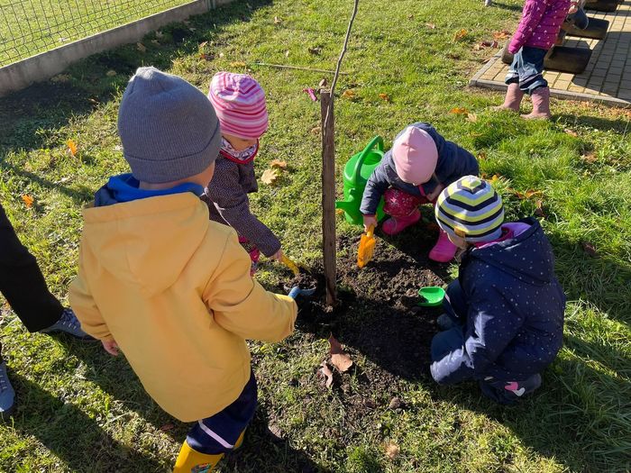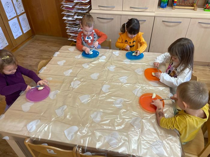 Děti se v tomto týdnu věnovaly tradicím a zvykům, které se dříve na podzim běžně dodržovaly. Připomněli jsme si svátek Dušiček, nasušili jsme si křížaly a na školkové zahradě jsme zasadili jabloň. Jeden den jsme věnovali tradičnímu šlapání zelí, které si děti mohly samy vyzkoušet. Také jsme zpívali a dramatizovali píseň Šla Nanynka do zelí.