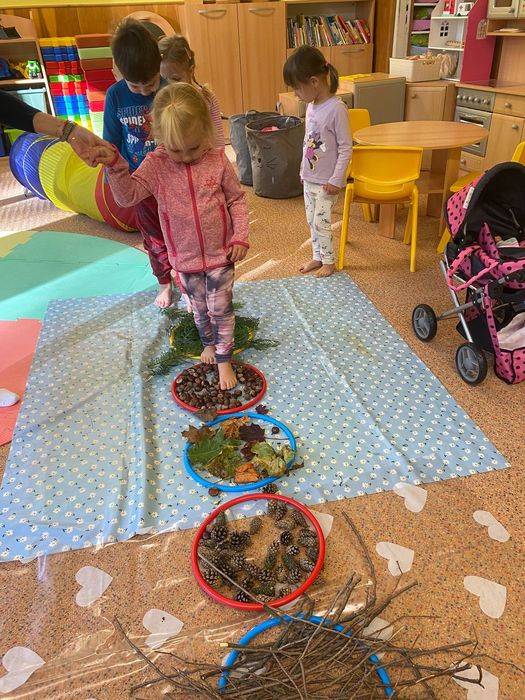 Společně jsme si užívali pobyt v přírodě a hry s přírodninami. Děti si mohly vše osahat, přivonět k plodům a pozorovat jejich barvy i tvary.