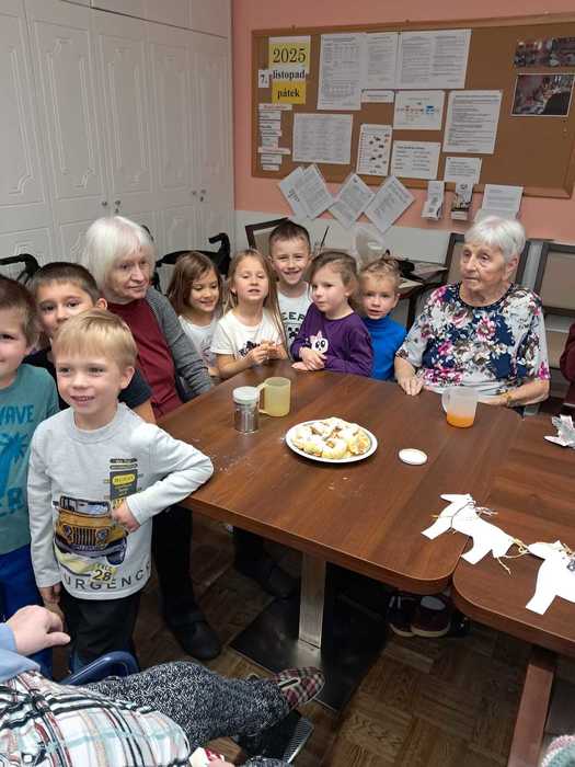 Svatomartinské dopoledne jsme v Domově na Zámku prožili ve znamení pohody, tvoření a vůně čerstvě upečených dobrot. Společně se seniory jsme pekli svatomartinské rohlíčky, které se krásně povedly a všem chutnaly. Nechybělo ani tvoření – vyráběli jsme papírové koníky s bohatými hřívami, kteří nám připomněli legendu o svatém Martinovi. Dopoledne jsme si všichni moc užili a odcházeli jsme s úsměvem a dobrým pocitem ze společně stráveného času.