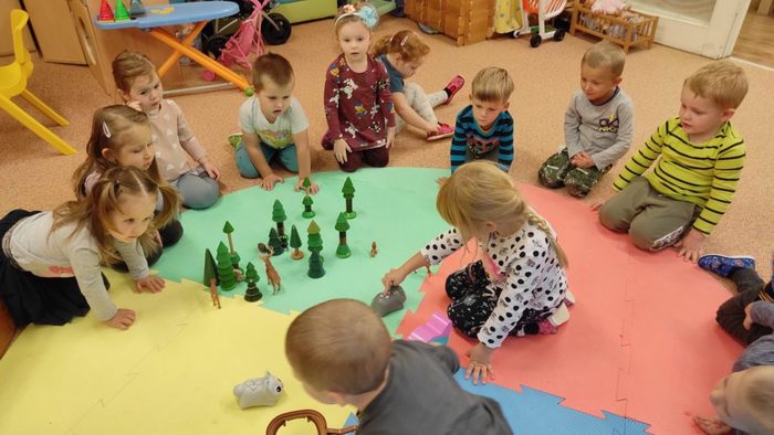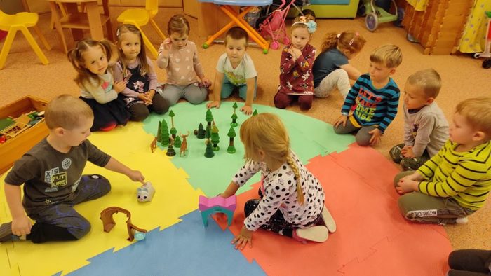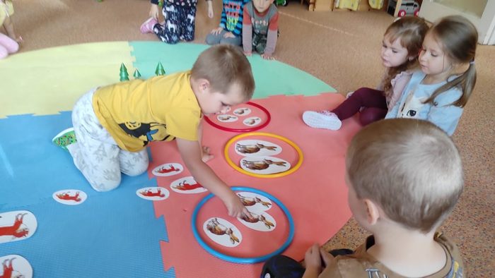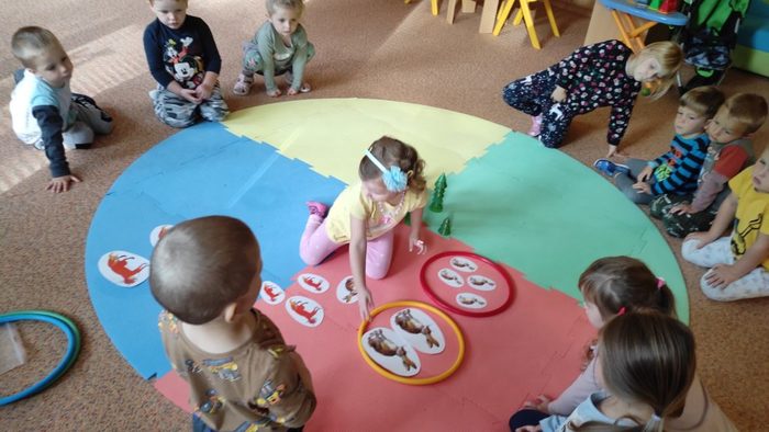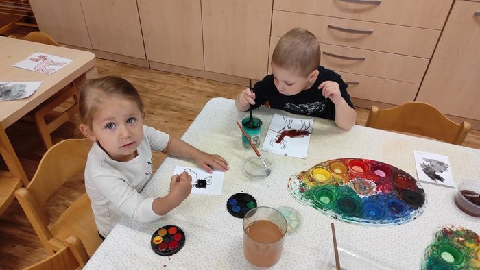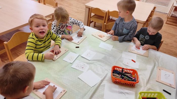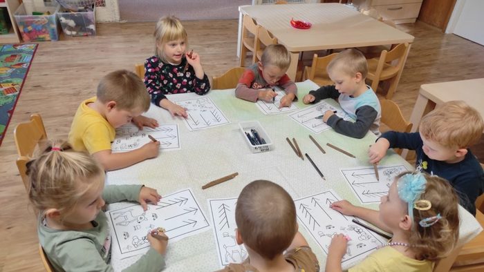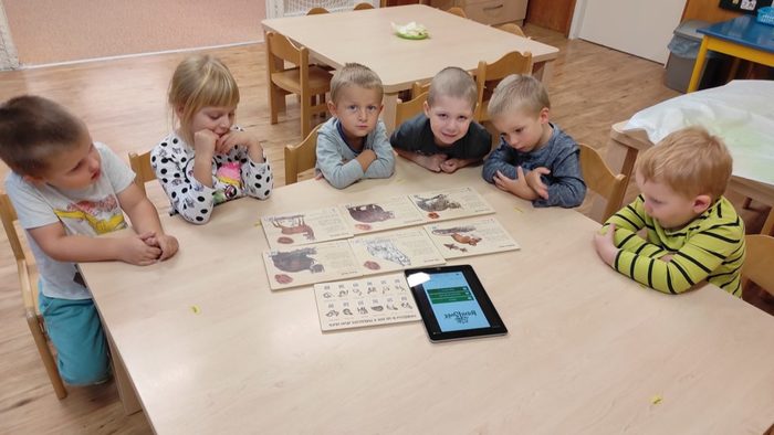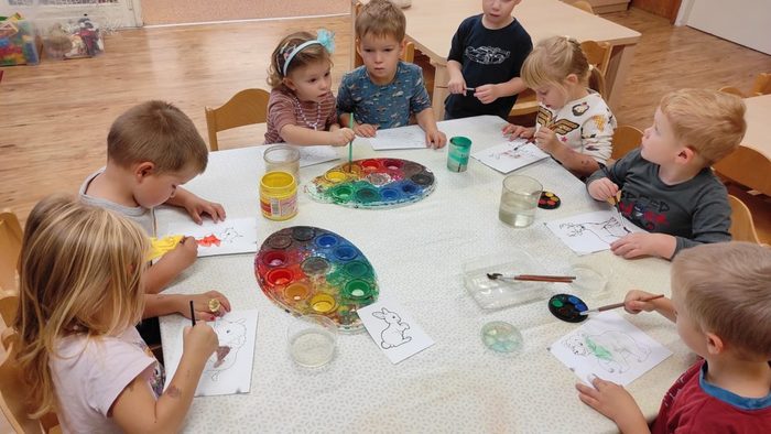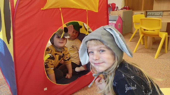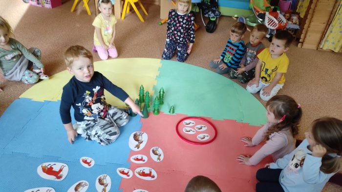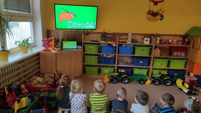 Lesní zvířátka jsou pro děti oblíbeným tématem. Děti si poslechly pohádku Budka v poli. Pokusily se ji dramatizovat. Starší děti seřazovaly obrázky z pohádky podle dějové posloupnosti. Pojmenovávali jsme lesní zvířátka. Děti vybarvovaly zvířátka i stromy a vytvořily tak les plný zvířátek. Broučky, které děti tvořily, jsme schovali do listí. Zvířátka děti třídily podle velikosti, určovaly a porovnávaly jejich počet. V rámci inovativní formy vzdělávání děti zhlédly kratičké video, ve kterém se seznámily s názvy zvířat a s tím jaké vydávají zvuky. Pomocí aplikace Lesní svět v tabletu se starší děti třídy Sluníčko načtením QR kódů z dřevěných obrázků výukové hry dověděly zajímavé informace o zvířátkách českých lesů. Vytvořily si i frotáž těchto zvířátek. Mladší děti sestavily les ze souboru dřevěných stromů a společně se staršími dětmi ze třídy se zapojily do hry s robotickými hračkami. Zatím děti pozorovaly a zkoušely, kterým směrem zajíček půjde, když zmáčkneme některé z tlačítek. Postupně budou starší děti zajíčkovi cestu programovat. Zazpívali jsme si písničky o zvířátkách a zahráli pohybové hry. Celý týden se zvířátky byl fajn.