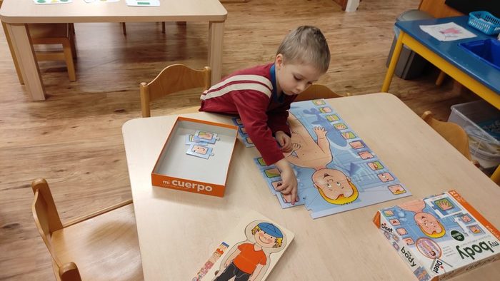 V průběhu týdne se děti seznamovaly s lidským tělem. Povídali jsme o tom, jak se chránit před úrazy i nemocemi. Veselá básnička o tetce Rýmě a písnička o bacilech děti zaujala na první poslech. Téma lidské tělo jsme zpracovávali výtvarně. Děti si nalepily z papíru pusu a do ní zuby, otiskly nabarvenou dlaň a dolepily „bacily, které utíkají před vodou a mýdlem“ tak, jak je to v naší nové písničce. V pátek nás v MŠ navštívil hasič pan Z. Vavrečka. Seznámil děti s významem práce hasičů při záchraně lidských životů i majetku při různých krizových událostech. Děti se šly podívat do hasičárny na výstroj i technické vybavení hasičů.
