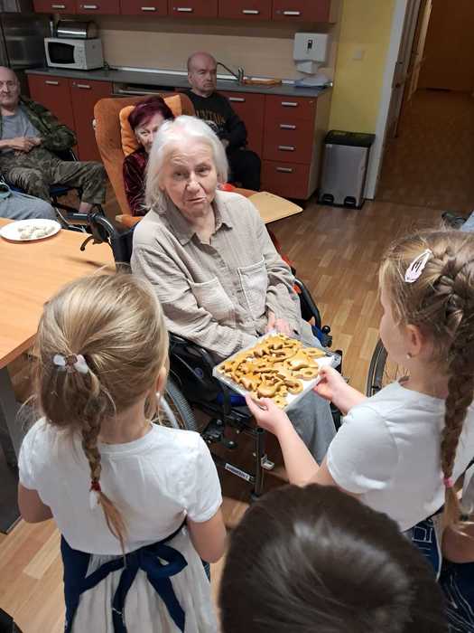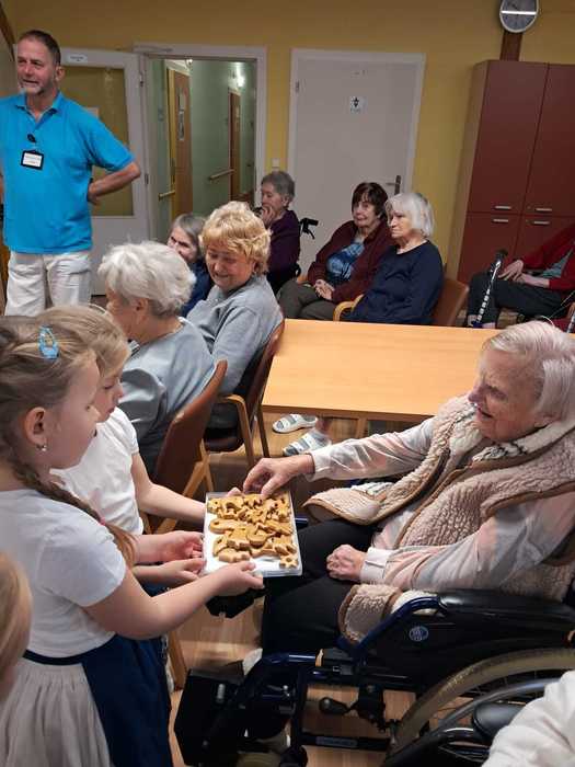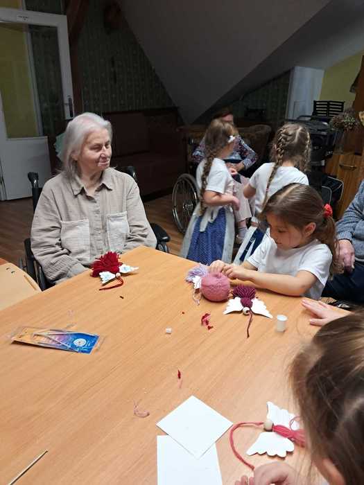 Milé setkání bylo doprovázeno rozdáváním perníčků a vánočním tvořením andělíčků, které si připravily paní ošetřovatelky.