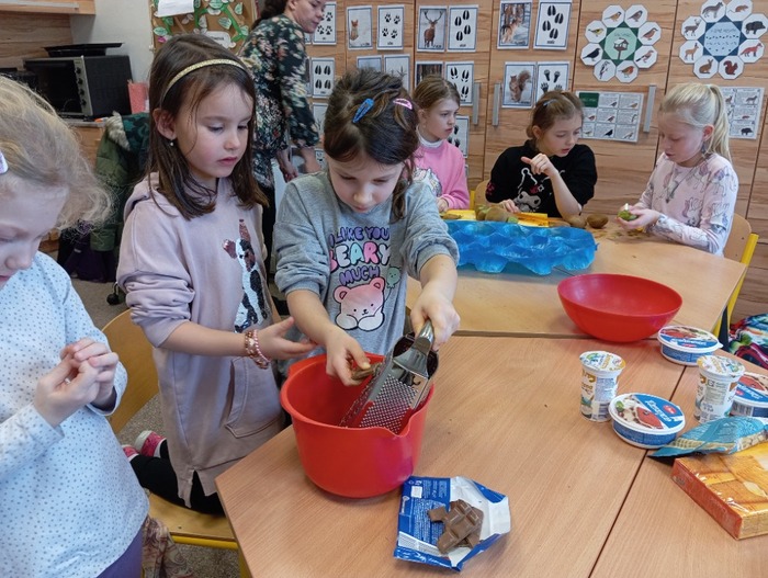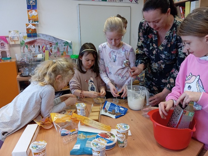 Žáci v družině připravovali "hříšný kelímek", který se skládal ze sušenek, mascarponového krému, ovoce, čokolády, oříšků a dalších dobrot. Kelímky zmizely jako pára nad hrncem.