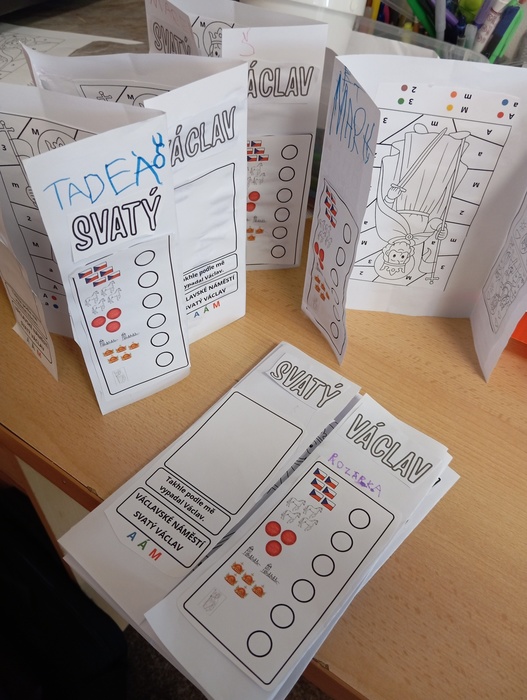 V neděli 28.9. byl státní svátek Den české státnosti, kdy si připomínáme i svatého Václava. Tím jsme se v družině zabývali celý týden. Žáci si vyráběli miniknížku nebo lapbook s informacemi o svatém Václavovi, prošli stezku a běhací diktát s otázkami na svatého Václava, kreslili jej, stavěli hrady a tak dále.