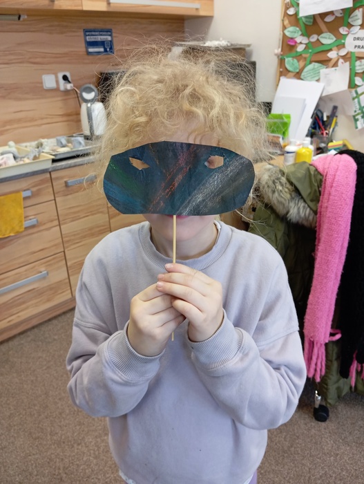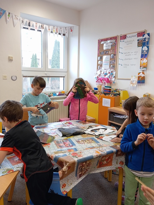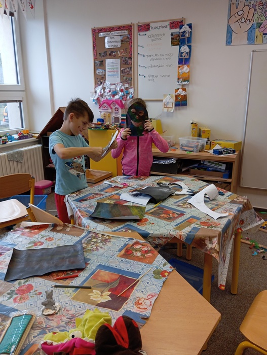 Ve středu žáci započali výrobu masopustních masek přípravou podkladu z voskovek a tuže. Ve čtvrtek pak žáci masky vyškrábali a vytvořili si svou masku.